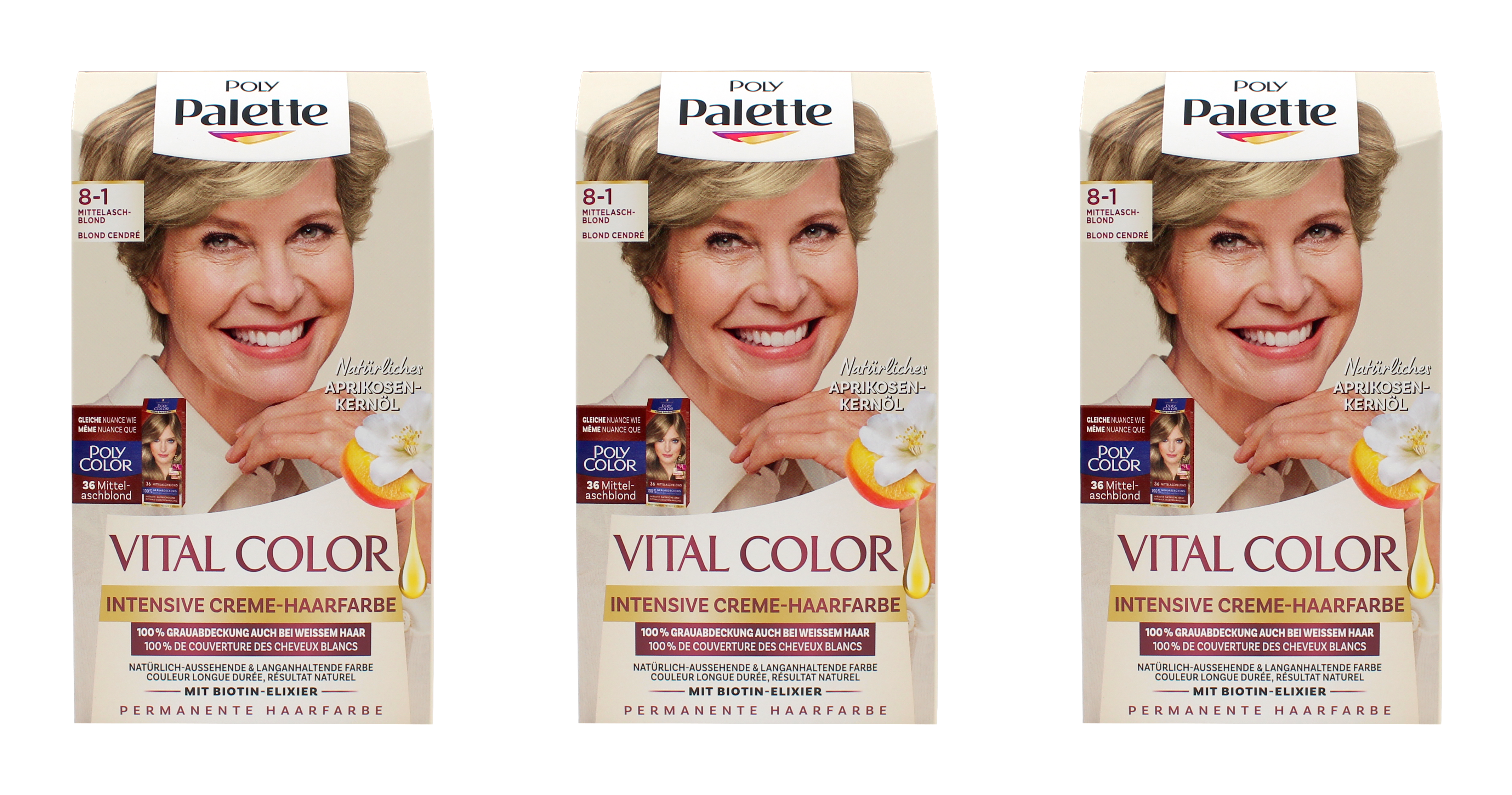 3x Poly Palette Vital Color Intensive Creme-Haarfarbe 8-1 Mittelaschblond