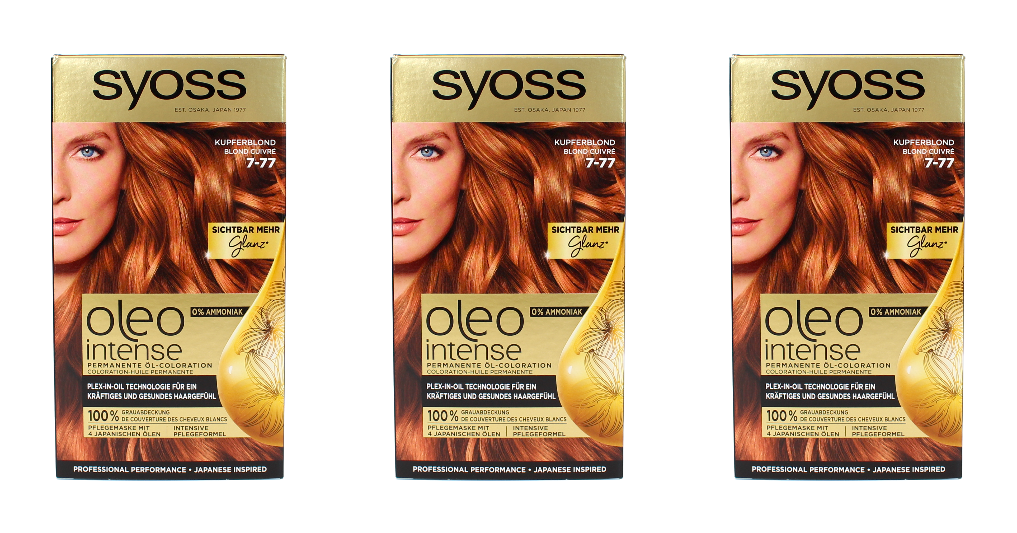 3x Syoss oleo permanente öl-coloration 7-77 Kupferblond